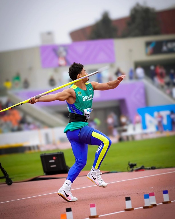 O atleta Arthur Curvo, de 19 anos, bolsista do Projeto Olimpus MT, se destacou na qualificatória de lançamento do dardo realizada no Estádio de La