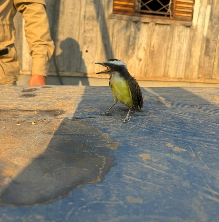O Corpo de Bombeiros Militar de Mato Grosso (CBMMT) resgatou, na tarde de terça-feira (27.08), um filhote de pássaro da espécie bem-te-vi que ficou preso