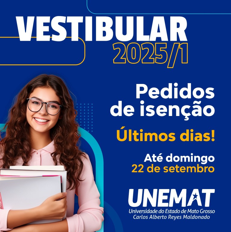 Os candidatos com interesse em ter isenção da taxa de inscrição no Vestibular 2025/1 da Universidade do Estado de Mato Grosso (Unemat) devem fazer o