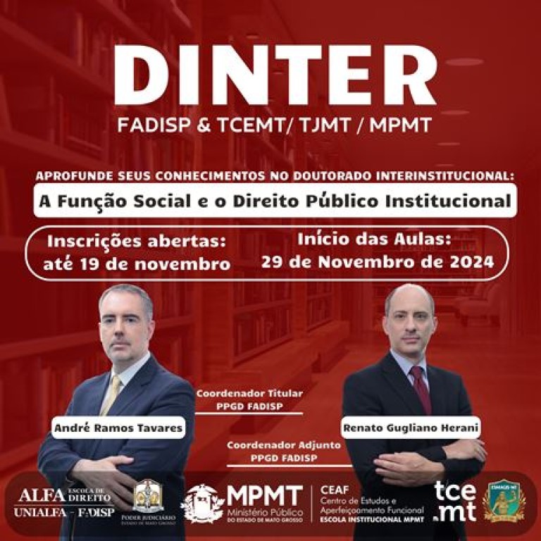 A Escola Superior da Magistratura de Mato Grosso está com inscrições abertas para o Processo Seletivo de Doutorado Interinstitucional, realizado em parceria com a Faculdade