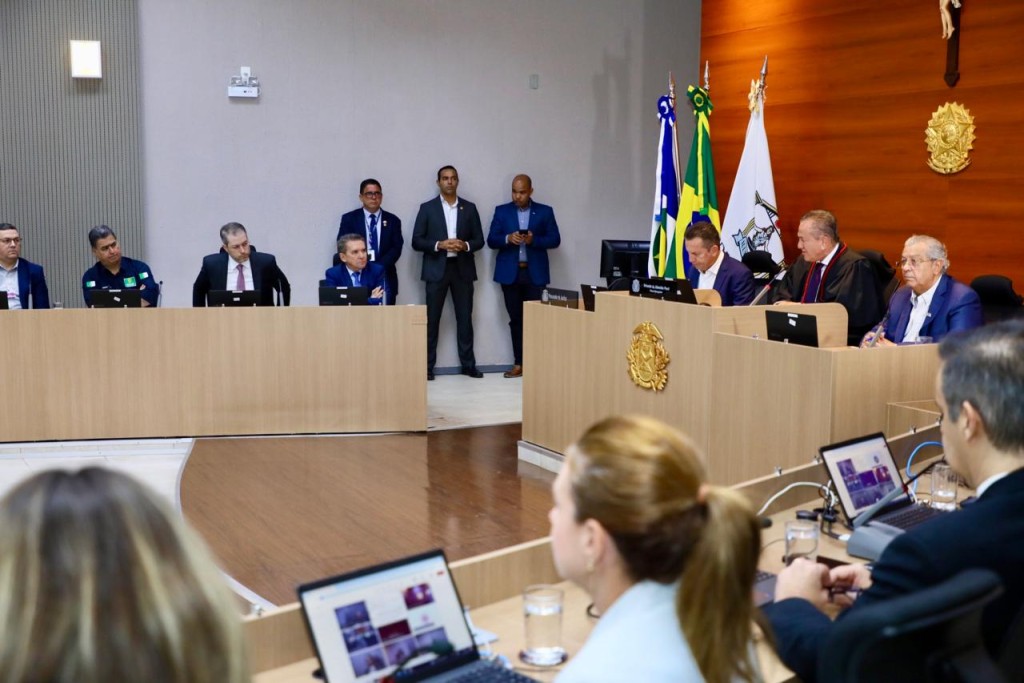 O prefeito de Cuiabá, Emanuel Pinheiro, participou na manhã desta segunda-feira (16) da reunião realizada na sede do Tribunal de Justiça de Mato Grosso, para
