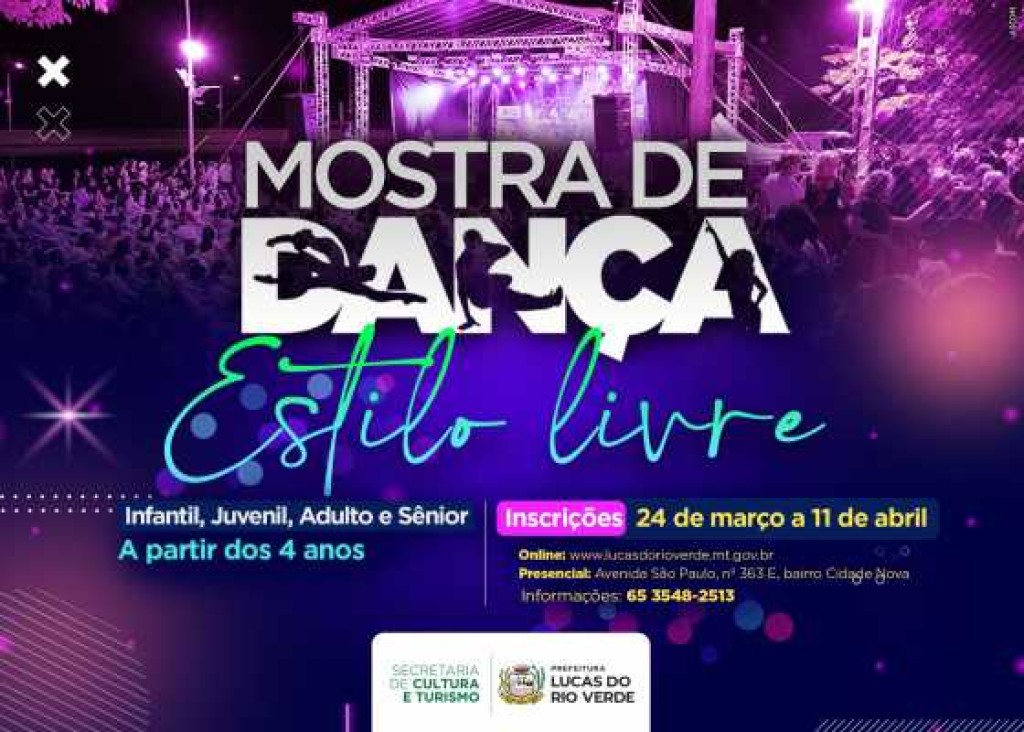 A Prefeitura de Lucas do Rio Verde, por meio da Secretaria de Cultura e Turismo, informa que as inscrições para a Mostra de Dança Estilo