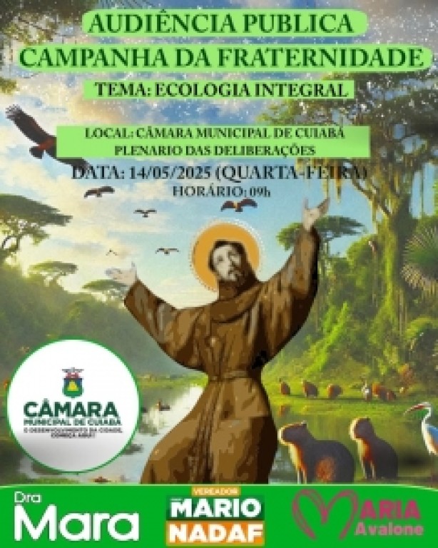 Da Assessoria – Vereador Mário Nadaf A Câmara Municipal de Cuiabá realiza, nesta quarta-feira (14), às 9h da manhã, no Plenário das Deliberações, uma Audiência