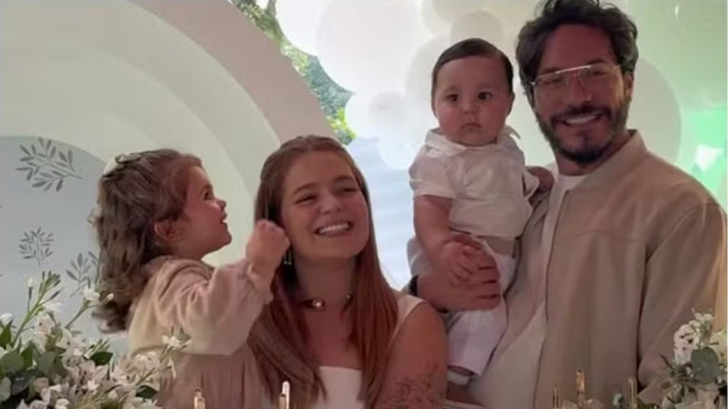 Viih Tube e Eliezer deram uma festa com bolo decorado com uma cruz dourada após apresentarem o caçula, Ravi, de seis meses em igreja evangélica. O casal de ex-BBB