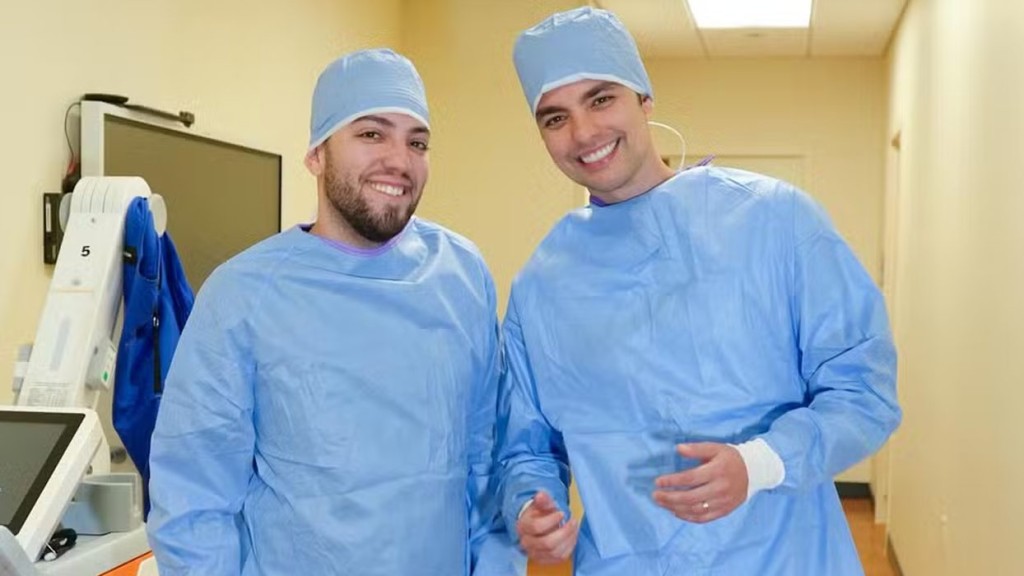 Lucas Rangel, de 27 anos, e Lucas Bley, de 32, se tornaram pais nesta quarta-feira (8). O casal postou uma foto em contjunto nas redes