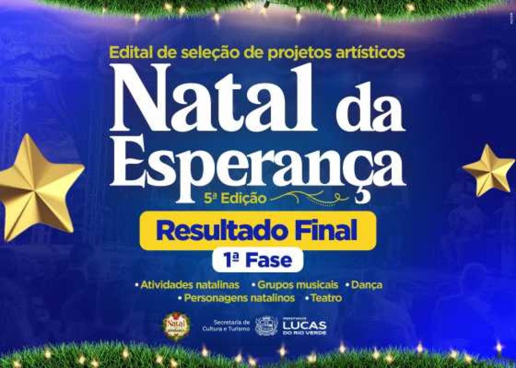 A Prefeitura de Lucas do Rio Verde, por meio da Secretaria de Cultura e Turismo, divulgou nesta terça-feira (28) o resultado final da primeira etapa