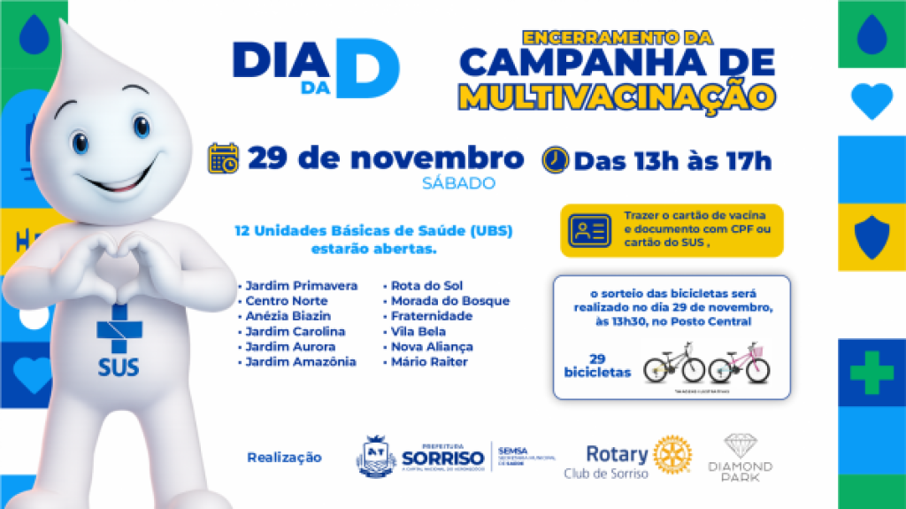 A iniciativa é realizada pela Prefeitura de Sorriso, por meio da Secretaria Municipal de Saúde (Semsa), com apoio do Rotary Club de Sorriso e do Diamond Park.