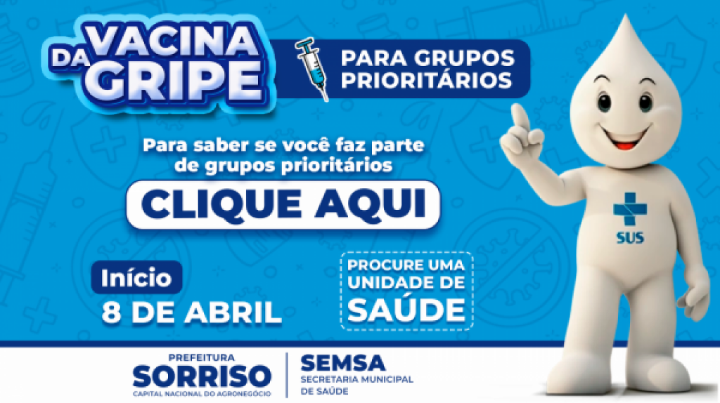 A meta é imunizar 32.943 pessoas contra a gripe. Contudo, até o momento, Sorriso aplicou apenas 4.310 doses, fator que tem preocupado a equipe da Secretaria de Saúde. “Nós precisamos reverter esse quadro; pedimos que familiares principalmente de crianças, gestantes e idosos que integram o público-alvo mais frágil, procurem as salas de vacina para a imunização”, alerta a coordenadora de Imunização, a enfermeira Kátia Dal Prá.