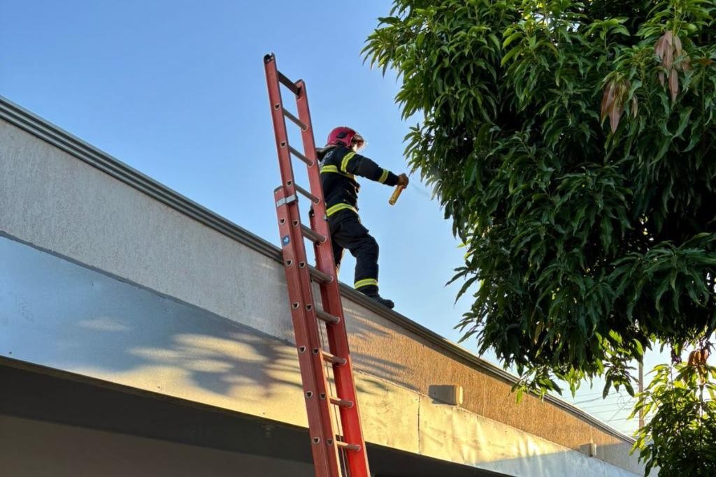 Para a retirada dos insetos, os bombeiros militares utilizaram um inseticida apropriado. Após a aplicação do produto, foi constatado que o ninho havia sido neutralizado.