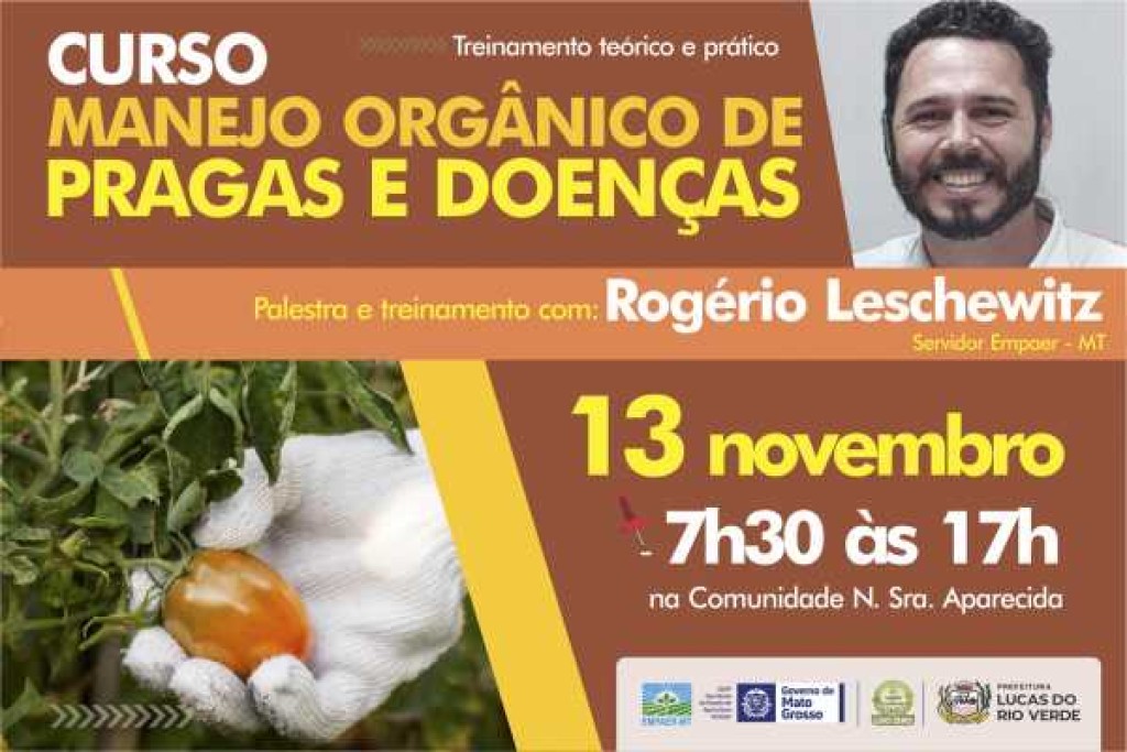 “Manejo Orgânico de Pragas e Doenças”, será tema de um curso ofertado pela Prefeitura de Lucas do Rio Verde e Empaer MT, no dia 13 de novembro, na Comunidade Nossa Senhora Aparecida.