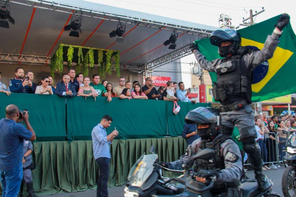PROGRAMAÇÃO – O desfile será aberto pela Polícia Rodoviária Federal (PRF), apresentando seu pelotão em carros, motos, viaturas e equipamentos utilizados no patrulhamento em rodovias. Em seguida, o pelotão do Exército Brasileiro, Polícia Militar e Corpo de Bombeiros de Mato Grosso se apresentam acompanhados pela Banda Municipal de Várzea Grande.