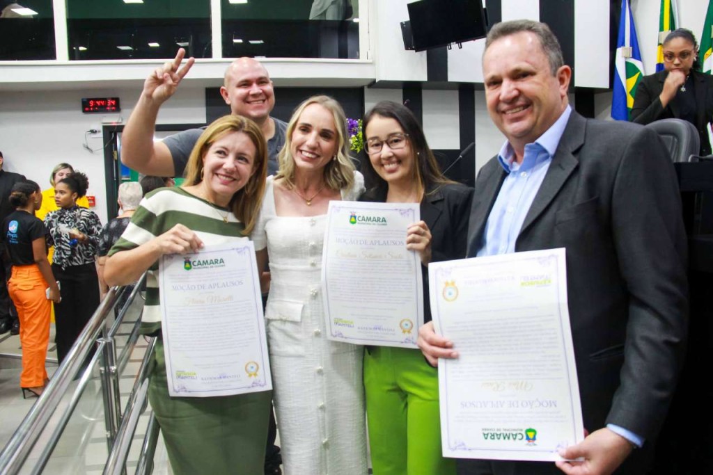 A prefeita de Várzea Grande, Flávia Moretti (PL), recebeu na noite de ontem (31), uma emocionante homenagem na Câmara de Vereadores de Cuiabá, pelos relevantes serviços prestados à Associação Mato-grossense de Pesquisa e Apoio à Adoção (Ampara). A homenagem também incluiu a secretária de Assistência Social de Várzea Grande, Cristina Saito, pelo trabalho fundamental no apoio às causas da infância e da adoção.