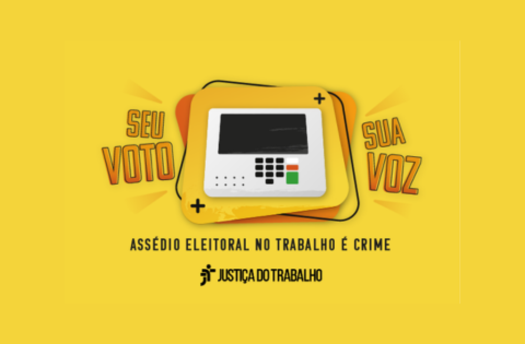A campanha “Seu voto, sua voz – Assédio eleitoral no trabalho é crime” será promovida pelos tribunais do Trabalho, em parceria com a Justiça Eleitoral e os Ministérios Públicos do Trabalho e Eleitoral. As ações serão intensificadas durante o período das eleições municipais.