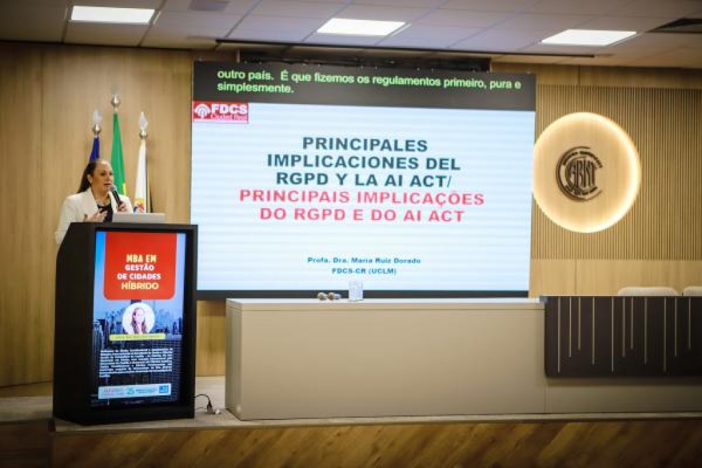 “Uma cidade inteligente pretende gerir melhor os serviços. Para isso, tem que, inevitavelmente, utilizar dados pessoais. Por outro lado, requer ferramentas tecnológicas que necessitam ou requerem um algoritmo e, então, já entramos no âmbito da Inteligência Artificial”, destacou María, acrescentando que a legislação europeia relacionada à Inteligência Artificial está em construção há nove anos e ainda não está totalmente em vigor. As sanções e condutas, por exemplo, entram em vigor em 2026, após um período transitório de três anos.