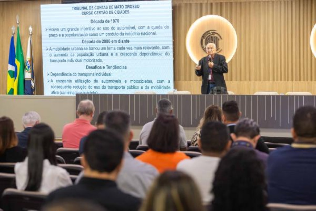 O Tribunal de Contas de Mato Grosso (TCE-MT) promoveu mais um passo rumo à construção de cidades mais inteligentes, inclusivas e ambientalmente responsáveis. O tema “Mobilidade Urbana Sustentável” foi o foco do segundo módulo do MBA em Gestão de Cidades, ministrado nesta sexta-feira (23) pelo professor Luiz Miguel de Miranda, no auditório da Escola Superior de Contas, com transmissão ao vivo pelo Canal do TCE-MT no YouTube e pela TV Contas (Canal 30.2).