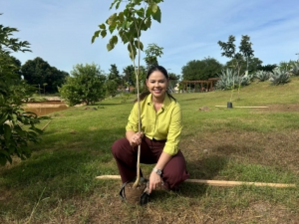 Michelly Alencar planta ipê-roxo em homenagem às vítimas de feminicídio