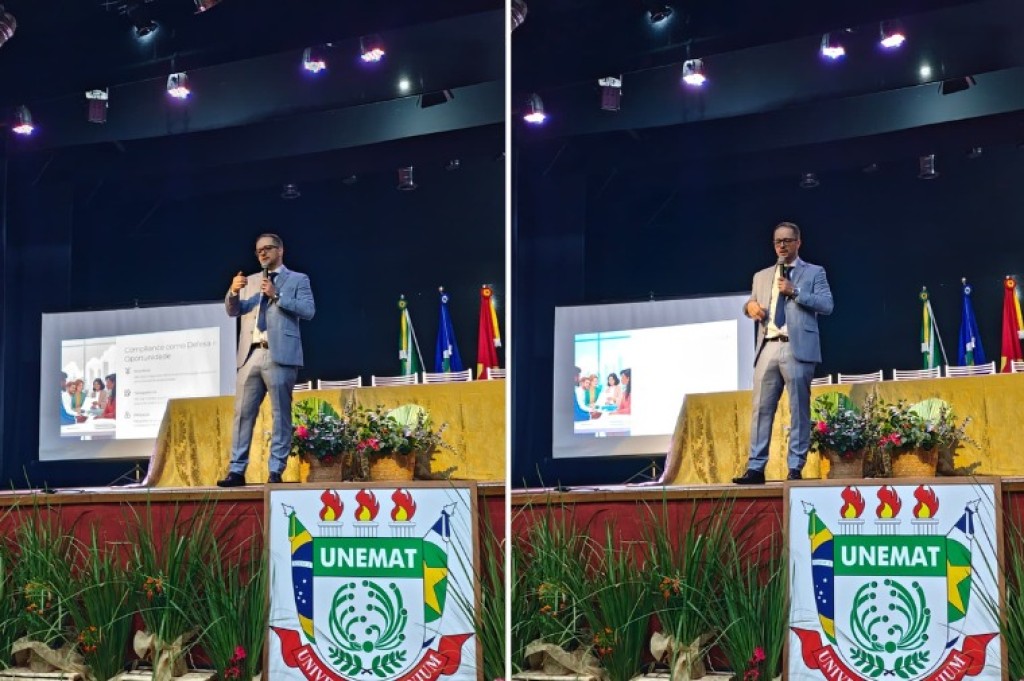 O Ministério Público de Mato Grosso (MPMT) participou da IX Semana Jurídica realizada pela Universidade do Estado de Mato Grosso (Unemat), campus de Alta Floresta. No evento, na terça-feira (21.10) o promotor de Justiça Adalberto Biazotto Júnior ministrou a palestra “Licenciamento e Compliance Ambiental nas Disputas Internacionais do Agronegócio”.O congresso reuniu estudantes, professores e membros da comunidade local com o objetivo de promover o diálogo entre academia, sociedade e instituições públicas sobre os desafios ambientais do agronegócio.O promotor de Justiça apresentou um panorama das disputas internacionais envolvendo o licenciamento e o compliance ambiental, destacando a importância da atuação preventiva do Ministério Público na fiscalização, no fortalecimento da regularidade ambiental e na defesa do meio ambiente ecologicamente equilibrado.Durante a exposição, o promotor também abordou exemplos concretos de conflitos regulatórios e comerciais, como as exigências de cadeias produtivas “livres de desmatamento” e as novas normas da Regulamentação Europeia sobre Desmatamento (EUDR), que impactam diretamente a exportação de commodities agrícolas e o licenciamento ambiental de empreendimentos rurais.“O Ministério Público tem papel essencial em assegurar que o desenvolvimento econômico ocorra em harmonia com a proteção ambiental, garantindo transparência, rastreabilidade e integridade nas cadeias produtivas”, destacou o Adalberto Biazotto Júnior.