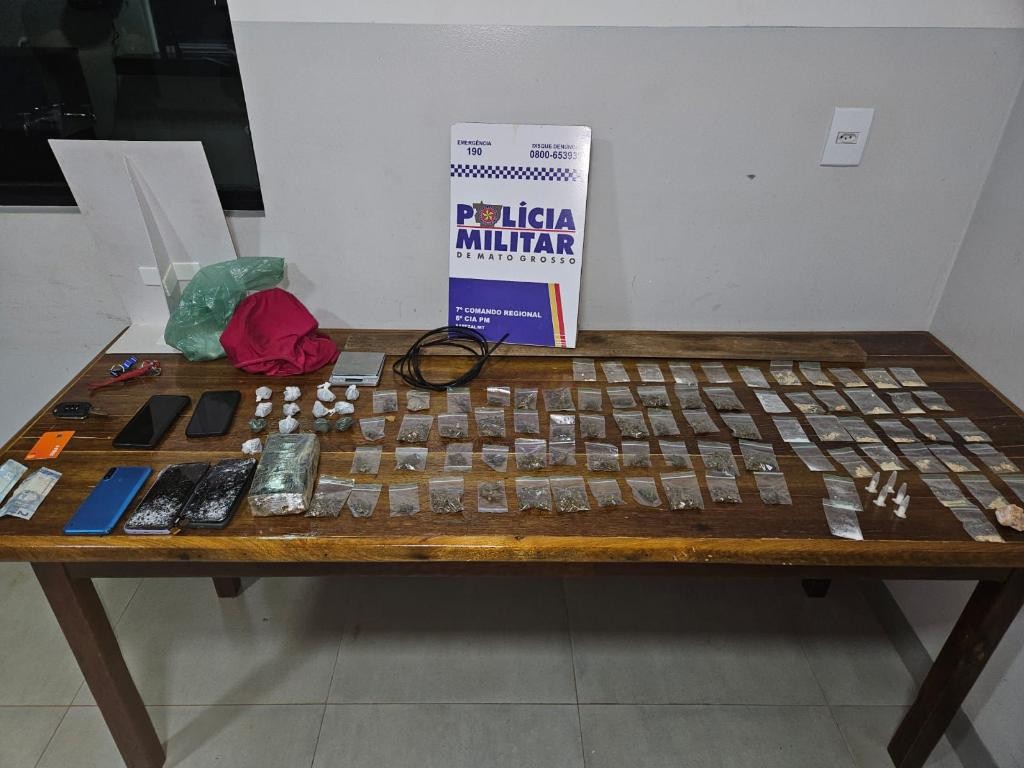 Policiais militares da 6ª Companhia Independente resgataram um homem, de 30 anos, vítima de sequestro e tortura, na noite desta quarta-feira (2.7), em Sapezal. As equipes prenderam em flagrante dois suspeitos e apreenderam um adolescente, de 17 anos, por tentativa de homicídio. O trio integra uma facção criminosa no município. Na ação, foram retiradas de circulação 99 porções de entorpecentes, entre maconha, cocaína e pasta base.