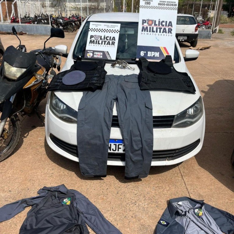 Posteriormente, os suspeitos também indicaram o endereço de uma residência utilizada como ponto de apoio pela facção criminosa. As equipes deslocaram até o local, onde foram encontrados diversos materiais de uso das forças de segurança pública estadual, entre eles fardamentos e coletes balísticos.