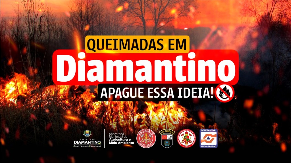 Com o objetivo de conscientizar a população e prevenir os riscos provocados pelas queimadas durante o período de estiagem, a Prefeitura de Diamantino, por meio da Secretaria de Agricultura e Meio Ambiente, lança a campanha “Queimadas: Apague Essa Ideia”.