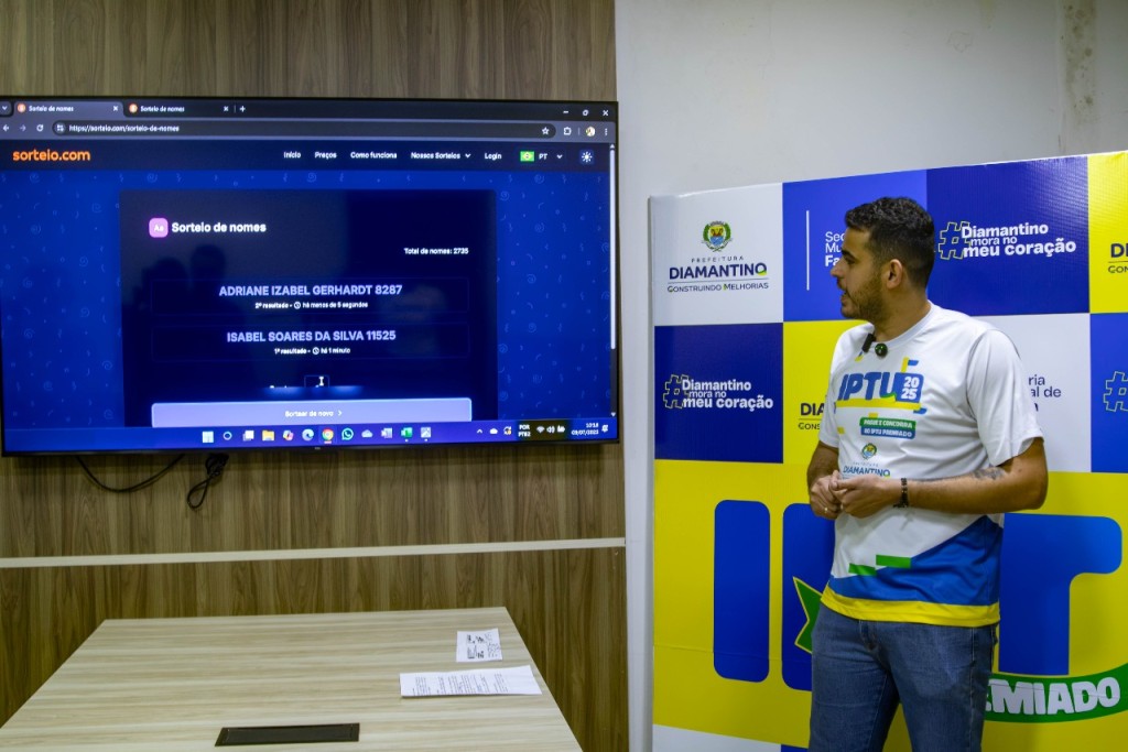 O sorteio foi transmitido ao vivo pelo Instagram da Prefeitura de Diamantino e premiou quatro contribuintes, sendo dois que optaram pelo pagamento em cota única e dois que mantêm o parcelamento em dia.