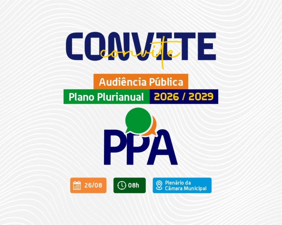 A Prefeitura de Sinop promove nesta terça-feira (26), às 8h, no Plenário da Câmara Municipal, uma audiência pública para apresentação e discussão do Plano Plurianual (PPA) 2026/2029. O encontro busca garantir a participação popular na definição de diretrizes e metas que irão nortear as ações do poder público municipal nos próximos quatro anos.