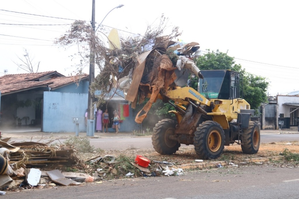 A Prefeitura de Sinop, por meio da Secretaria de Obras e Serviços Urbanos, iniciou nesta quinta-feira (18) um mutirão de limpeza na região dos Vilas, que compreende o Residencial Sabrina, Vila Juliana, Vila Santana I e II, Vila Lobos I e II, Vila Mariana e Residencial Sebastião de Matos. A ação, que deve ser concluída nesta sexta-feira (19), busca recolher entulhos e materiais descartados de forma irregular nas praças, ruas e avenidas da região.