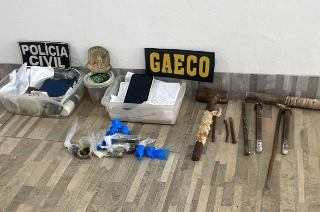 Na operação foram cumpridos mandados de busca e apreensão na casa da esposa do reeducando e na Penitenciária Major Eldo de Sá Correa, ambos em Rondonópolis. Foram apreendidos entorpecentes, celulares e anotações de transações financeiras e armas brancas no presídio.