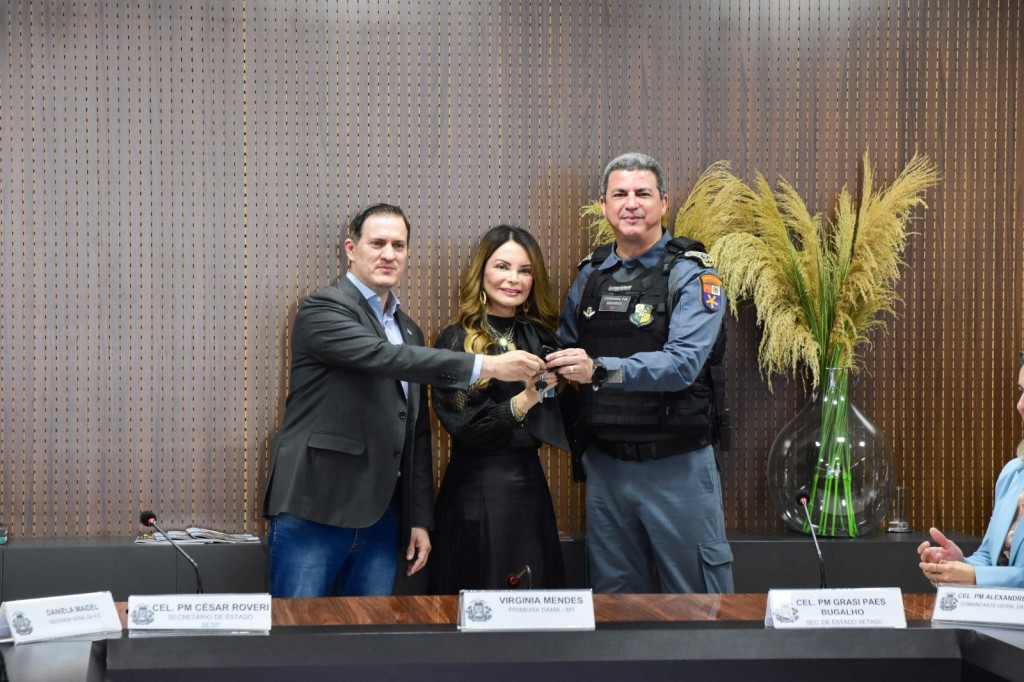 A Secretaria de Segurança Pública de Mato Grosso (Sesp) e a primeira-dama do Estado, Virginia Mendes, entregaram nesta segunda-feira (14.10) quatro novas viaturas que irão fortalecer as ações de proteção às mulheres em Cuiabá e Várzea Grande, por meio do programa Ser Família Mulher.
