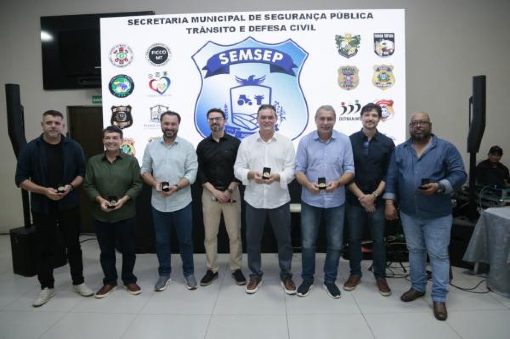 O prefeito Alei Fernandes, o vice Acácio Ambrosini, o secretário de Segurança Pública, Trânsito e Defesa Civil (Semsep), coronel da reserva da PM, Adriano Denardi e o adjunto da pasta Gilvano de Ávila, foram alguns dos sorrisenses homenageados ontem, 09 de dezembro, com a medalha Força Integrada de Combate ao Crime Organizado (FICCO) concedida pela Polícia Federal de Mato Grosso à parceiros da PF. O superintendente da PF no estado, Marcílio Manfré Alonso e o chefe do Setor de Inteligência, Antônio Flávio Rocha Freire, estiveram em Sorriso para a solenidade.