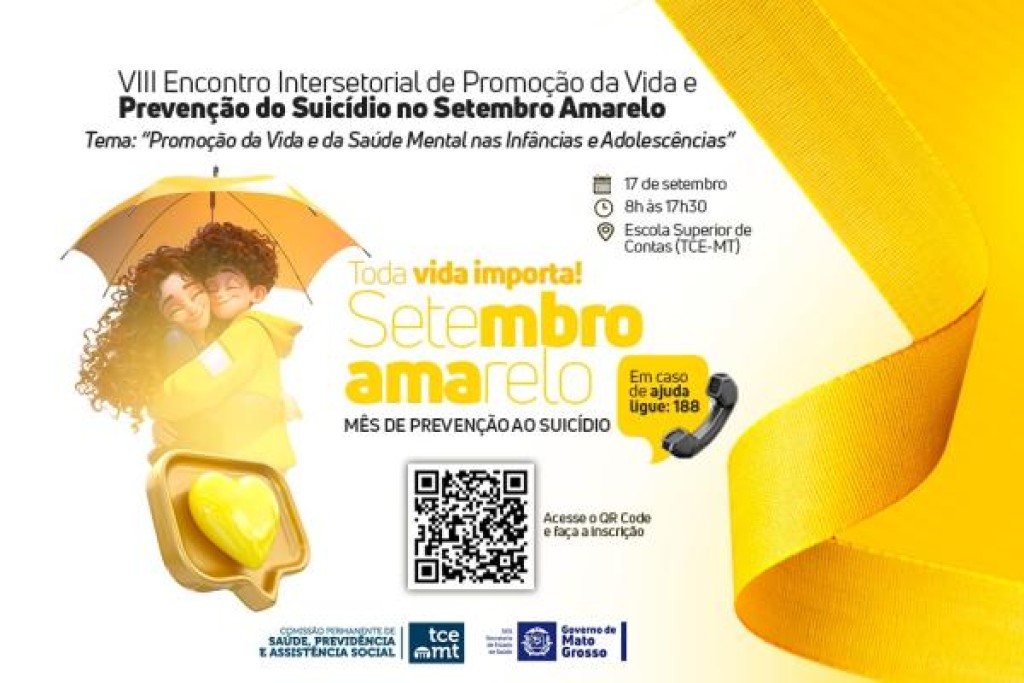 O Tribunal de Contas de Mato Grosso (TCE-MT) recebe nesta terça-feira (17), a partir das 8h, o VIII Encontro Intersetorial de Promoção da Vida e Prevenção do Suicídio, que nesta edição traz como tema “Promoção da Vida e da Saúde Mental nas Infâncias e Adolescências”.