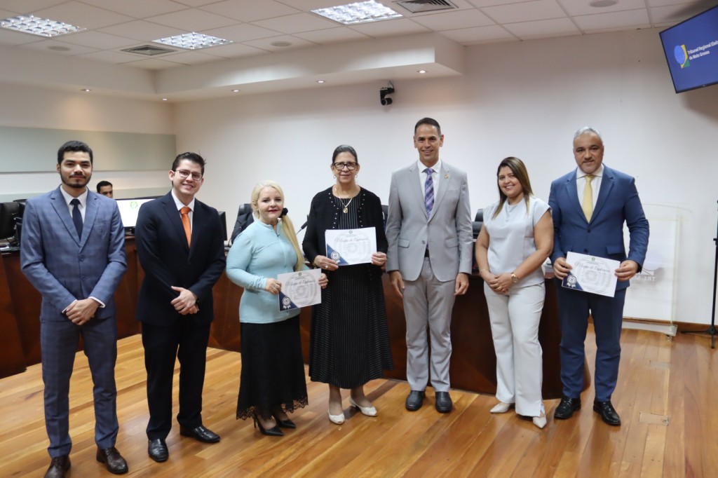 O Tribunal Regional Eleitoral de Mato Grosso (TRE-MT) recebeu, nesta quinta-feira (30.01), uma Moção de Aplauso concedida pela Faculdade de Direito da Universidade Federal de Mato Grosso (UFMT). A homenagem foi entregue ao final da sessão plenária do Tribunal, em reconhecimento ao fortalecimento do diálogo interinstitucional, ao desenvolvimento de projetos conjuntos e à importância da Justiça Eleitoral para a sociedade mato-grossense.