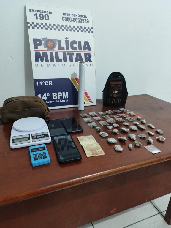 Policiais militares do 14º Batalhão prenderam dois homens e apreenderam um adolescente, de 17 anos, suspeitos por tráfico ilícitos de drogas, durante patrulhamento tático em decorrência da Operação Força Total, no município de Primavera do Leste (240 km de Cuiabá). As equipes apreenderam 53 porções de substância análogas à maconha e pasta base de cocaína.