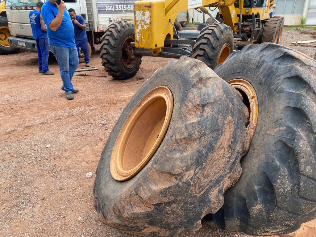 Foram substituídos oito pneus em duas motoniveladoras, conhecidas como patrolas, que são fundamentais para a conservação de ruas e estradas de terra. Seis dos pneus trocados são do modelo 14.00-24, enquanto os outros dois são 17.5-25. As máquinas beneficiadas foram uma patrola XCMG e uma New Holland que estava parada há cerca de cinco meses.